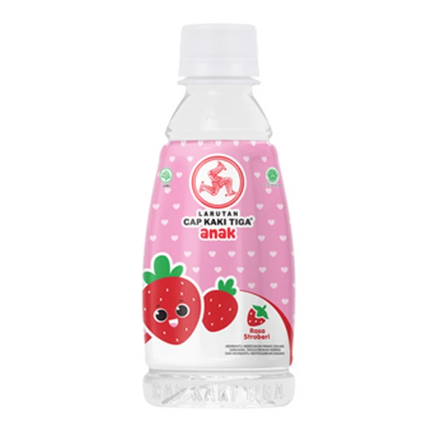 Larutan Cap Kaki Tiga Anak Botol Strawberry 250ml cocok dinikmati sebagai minuman penyegar di cuaca panas atau sebagai camilan ringan kapan pun Anda menginginkannya.