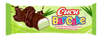 PANDAN CAKE FLAVOUR WITH VANILLA CREAM COATED WITH CHOCOLATE PASTE.