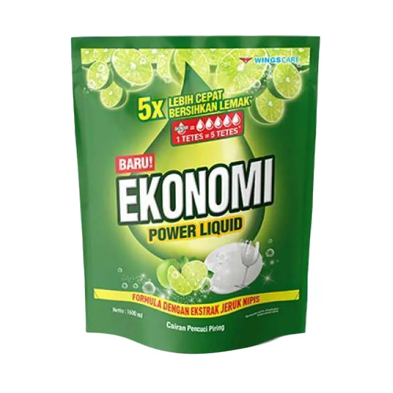Ekonomi cairan pencuci piring dengan aroma jeruk nipis & siwak 5x lebih cepat mengangkat lemak dan sisa kotoran.