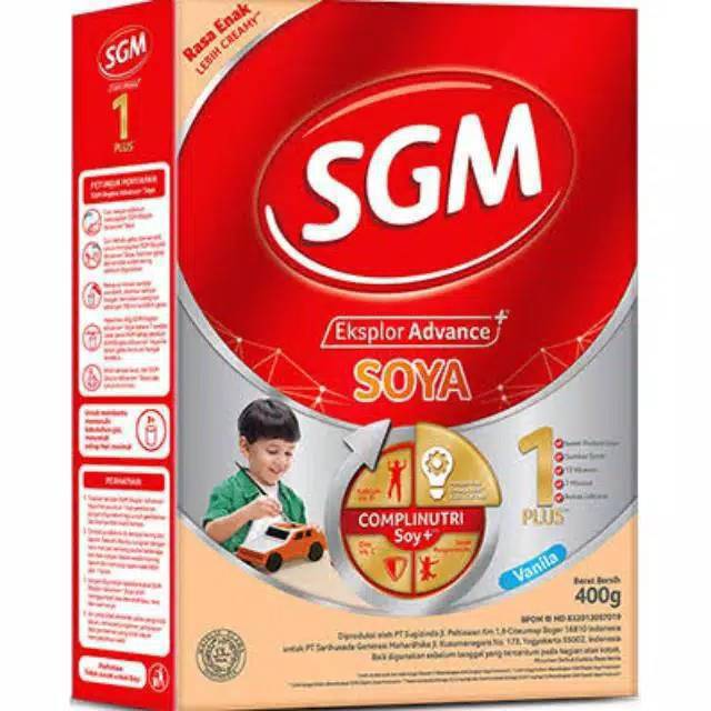 SGM Eksplor Soya 1+ Vanila 400 g adalah susu pertumbuhan untuk anak usia 1–5 tahun yang terbuat dari isolat protein kedelai dan memiliki rasa vanila. Susu ini bebas laktosa dan dapat menjadi alternatif nutrisi untuk anak yang alergi susu sapi.