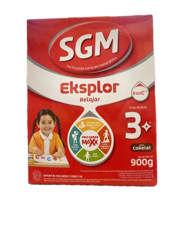 SGM Eksplor 3+ Cokelat 900g adalah salah satu merek susu lokal yang terkenal di indonesia, susu yang mengandung nutrisi berkualitas untuk anak, (mengandung OMEGA 3&6, Minyak ikan, tinggi vitamin C, protein, vitamin D, Kalsium dan serat pangan).